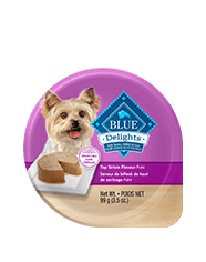 Idéale pour les petits chiens qui ont un grand appétit, la nourriture BLUE Delights en portion individuelle est délicieuse et nutritive. Notre recette à saveur de côte de bœuf contient du bœuf de qualité supérieure dans une sauce consistante, ainsi que des carottes, des pommes de terre et des pois enrichis de vitamines et de minéraux.