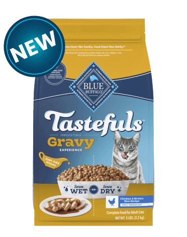 Feed it dry for a crave-worthy crunch or just add water for a savory gravy your pal can’t resist. Made with real chicken and wholesome brown rice, BLUE Tastefuls Gravy has the taste mature cats love.
