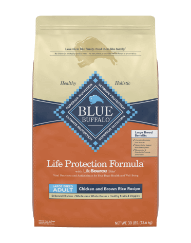 Formulated especially for the unique needs of bigger dogs, BLUE Life Protection Formula for Large Breed Dogs is made with healthy, natural ingredients starting with real lamb plus fruits, veggies, and wholesome whole grains. This dry dog food for large breeds from Blue Buffalo also contains Glucosamine and Chondroitin to support joint health and mobility.