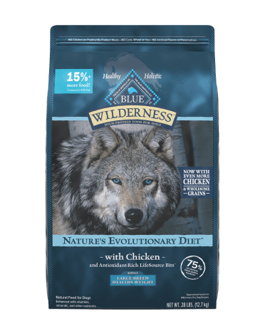Inspired by the diet of wolves who have roamed the American West for centuries, BLUE Wilderness Rocky Mountain Recipe is a protein-rich food features deboned beef, lamb, and venison, plus glucosamine and chondroitin to help support your large breed dog's joint health and mobility.