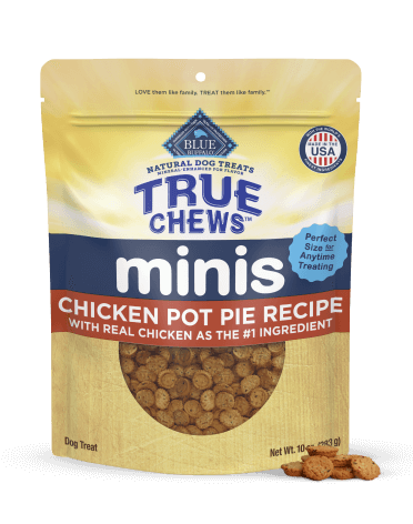 No canine can resist the allure of real chicken. That’s why BLUE True Chews Minis dog treats are made with real chicken as the first ingredient and no artificial flavors or preservatives. Dogs will love the smaller size — they're the perfect surprise anytime of the day.