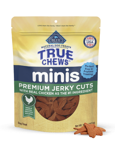 Give your best friend a taste of home cooking with BLUE True Chews Minis Premium Treats. Proudly made in the USA with ingredients you can trust, like real chicken and healthy veggies, these irresistible treats will be an instant family favorite. Dogs will love the smaller size — they're the perfect surprise anytime of the day.