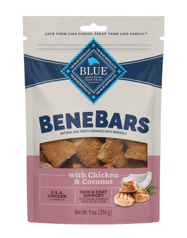 Les délicieuses gâteries tendres cuites au four BLUE BeneBars contiennent des fibres prébiotiques pour favoriser la santé digestive des chiens. Elles sont faites avec du vrai poulet comme premier ingrédient et des pommes pour une gâterie qui ne manquera pas de ravir leurs papilles.